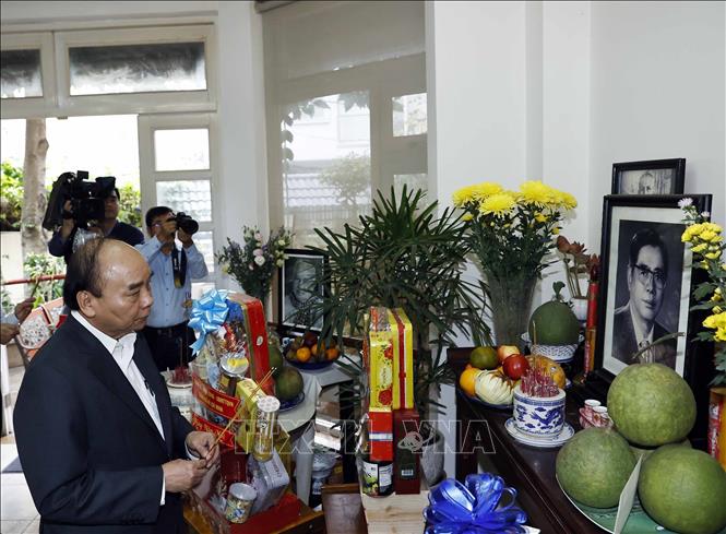 | Chủ tịch nước Nguyễn Xuân Phúc dâng hương tưởng nhớ Tổng Bí thư Nguyễn Văn Linh. |