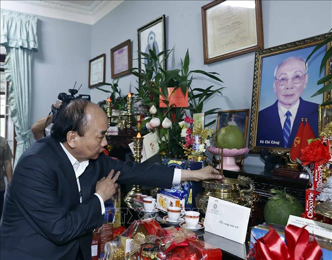 | Chủ tịch nước Nguyễn Xuân Phúc dâng hương tưởng nhớ Chủ tịch Hội đồng Nhà nước Võ Chí Công. |