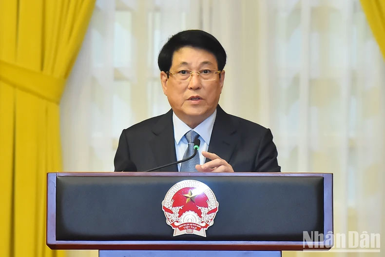 | Chủ tịch nước Lương Cường phát biểu giao nhiệm vụ cho các đồng chí được bổ nhiệm. |