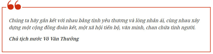 Nhấn mạnh truyền thống của dân tộc Việt Nam luôn đoàn kết, nhân ái, “thương người như thể thương thân”, Chủ tịch nước cho biết, là đất nước phải trải qua những năm dài chiến tranh giải phóng dân tộc, bảo vệ Tổ quốc, thường xuyên bị thiên tai, dịch bệnh tàn phá, truyền thống ấy càng được khẳng định và nhân lên mạnh mẽ.