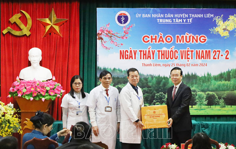 Trước đó, vào đầu giờ sáng cùng ngày, Chủ tịch nước Võ Văn Thưởng cùng Đoàn công tác đã đến thăm, tặng quà cán bộ, y bác sĩ, nhân viên y tế tại Trung tâm Y tế huyện Thanh Liêm và Trạm Y tế xã Thanh Phong, huyện Thanh Liêm nhân Ngày Thầy thuốc Việt Nam 27-2.