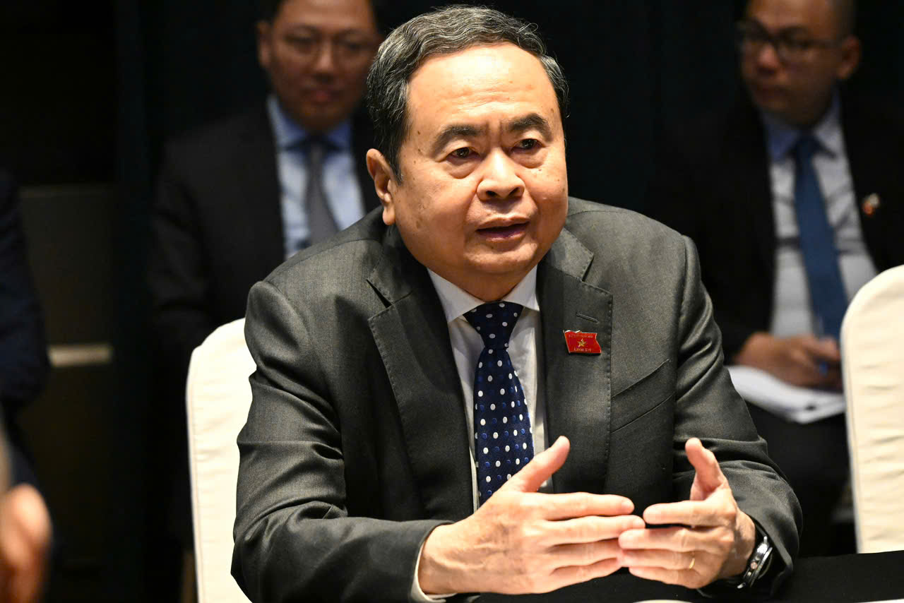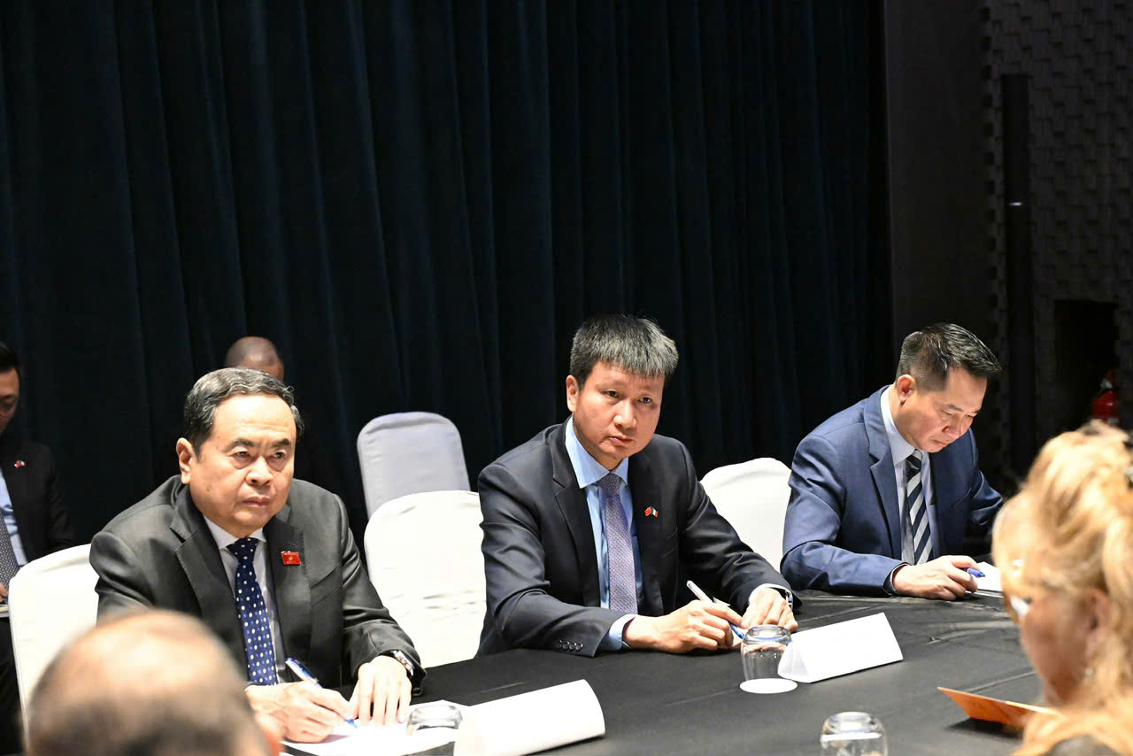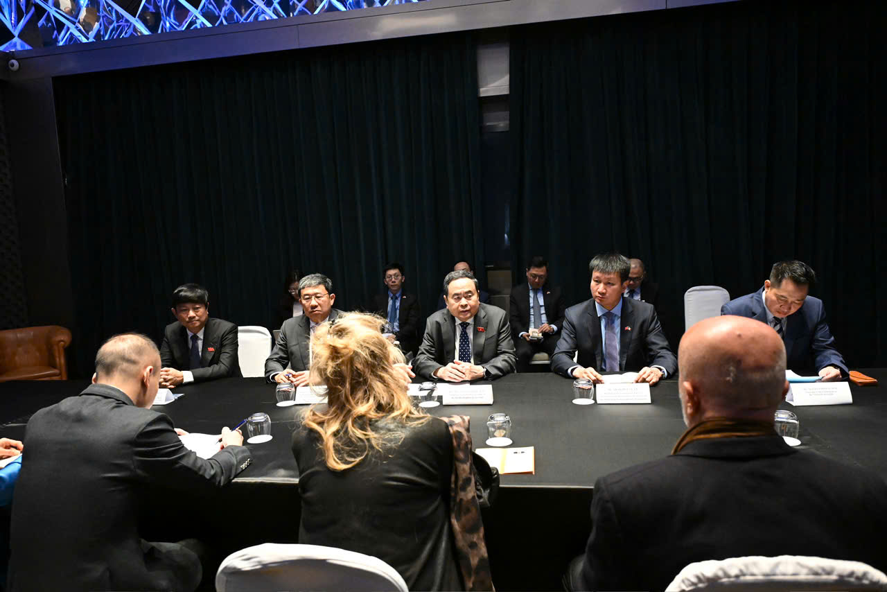 Chủ tịch Quốc hội Trần Thanh Mẫn phát biểu trong cuộc gặp Lãnh sự danh dự Việt Nam tại Torino Sandra Scagliotti. Ảnh: quochoi.vn