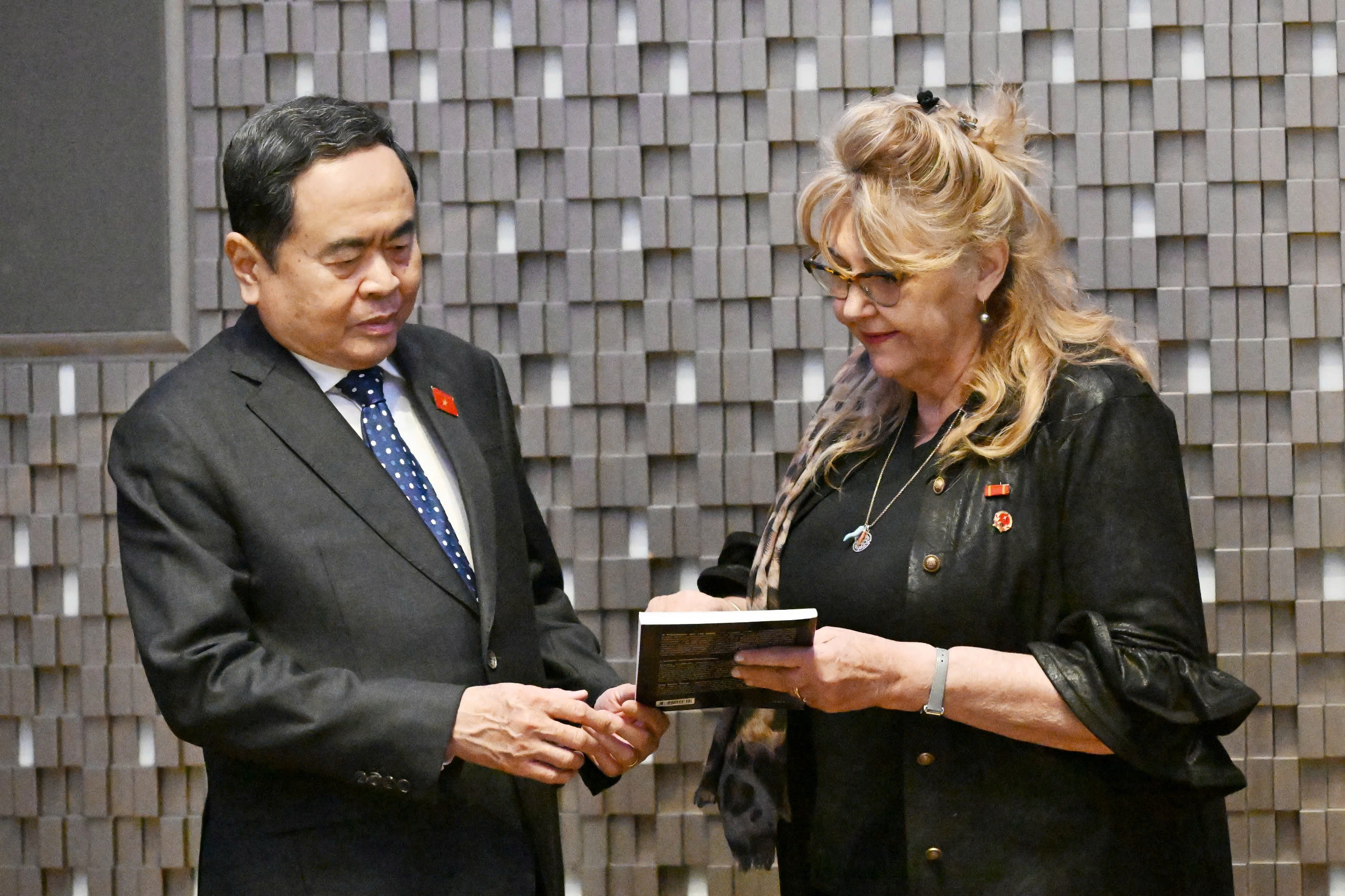 Chủ tịch Quốc hội Trần Thanh Mẫn trao tặng Lãnh sự danh dự Sandra Scagliotti cuốn sách về 80 năm Quốc hội Việt Nam. Ảnh: quochoi.vnLãnh sự danh dự Việt Nam tại TorinoSandra Scagliotti trao tặng Chủ tịch Quốc hội Trần Thanh Mẫn cuốn sách về Chủ tịch Hồ Chí Minh. Ảnh: quochoi.vn