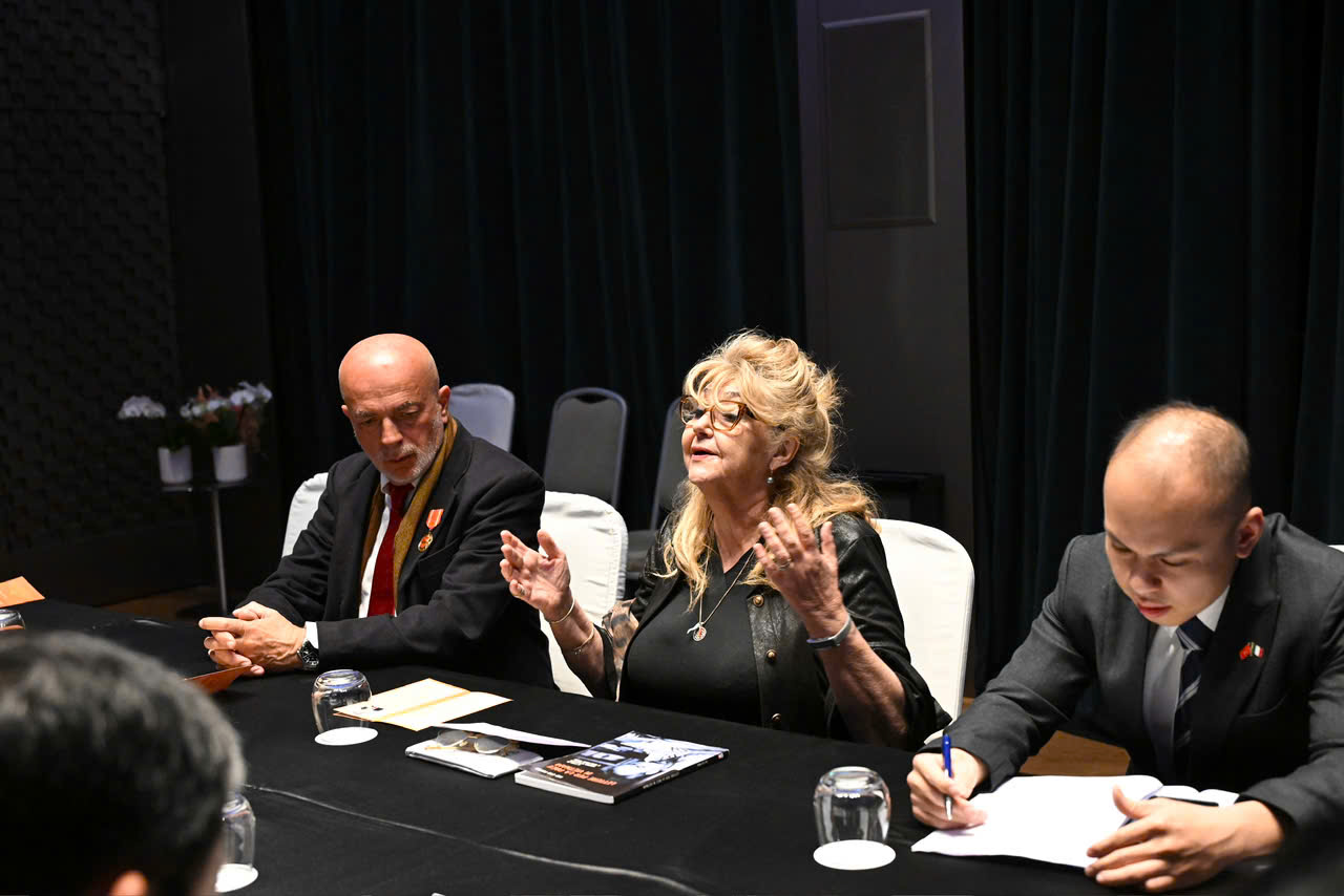 Chủ tịch Quốc hội bày tỏ rất vui mừng gặp Lãnh sự danh dự Việt Nam Sandra Scagliotti cùng phu quân trong chuyến thăm chính thức Italia; chia sẻ những cảm xúc đặc biệt khi đến Italia, đất nước giàu truyền thống văn hóa và tươi đẹp, có quan hệ hữu nghị truyền thống rất tốt đẹp với Việt Nam.