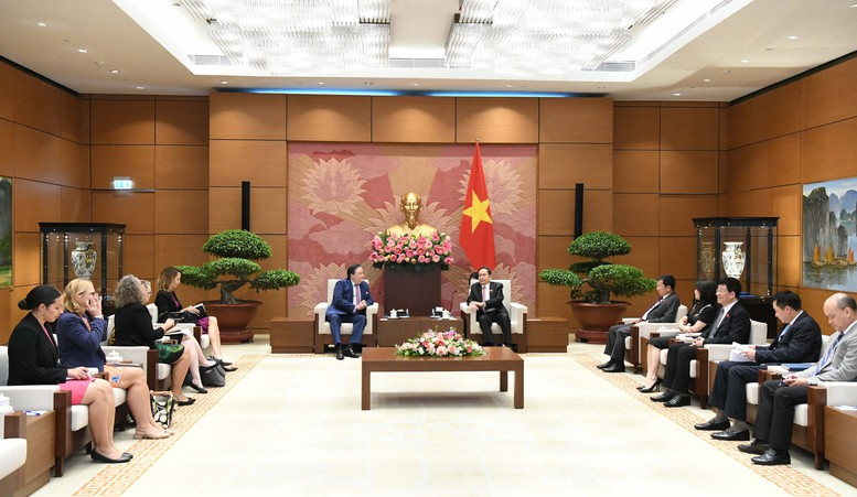 Chủ tịch Quốc hội nêu rõ, Việt Nam luôn coi Hoa Kỳ là đối tác có tầm quan trọng chiến lược; hoan nghênh Hoa Kỳ tiếp tục cam kết ủng hộ một Việt Nam mạnh, độc lập, tự cường và thịnh vượng; nhấn mạnh, thời gian tới, hai bên cần tăng cường thực hiện Tuyên bố chung về nâng cấp quan hệ Việt Nam - Hoa Kỳ lên Đối tác Chiến lược Toàn diện và kế hoạch hành động Việt Nam – Hoa Kỳ tiến tới kỷ niệm 30 năm thiết lập quan hệ ngoại giao vào năm 2025.