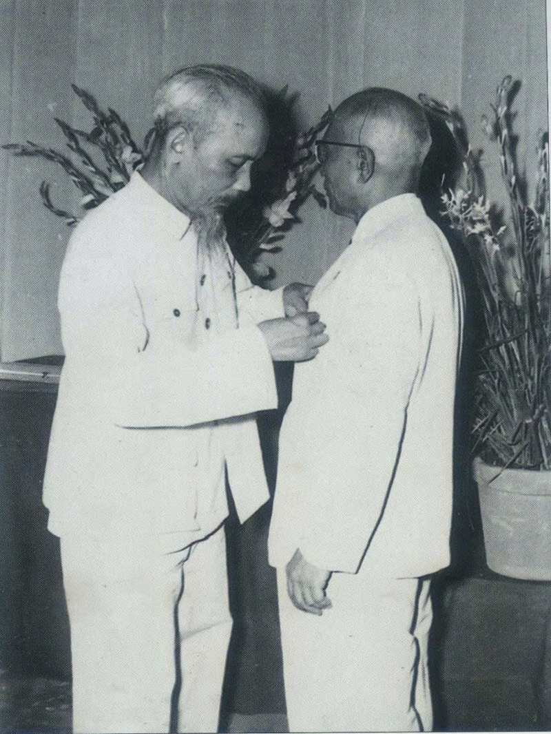 Năm 1958, nhân kỷ niệm sinh nhật lần thứ 70 của Bác Tôn (20/8), Quốc hội quyết định tặng Bác Tôn Huân chương Sao Vàng. Tại lễ trao tặng, trước khi gắn tấm Huân chương Sao Vàng lên ngực áo Bác Tôn, Bác Hồ rất vui và xúc động phát biểu: “Đồng chí Tôn Đức Thắng là người con ưu tú của Tổ quốc, suốt 50 năm đã không ngừng hoạt động cách mạng. 17 năm bị thực dân Pháp cầm tù, chín năm tham gia lãnh đạo kháng chiến, bốn năm phấn đấu để bảo vệ hoà bình thế giới và đấu tranh cho sự nghiệp thống nhất nước nhà. Đồng chí Tôn Đức Thắng 70 tuổi nhưng rất trẻ, đối với Đảng, đồng chí là 28 tuổi; đối với nước Việt Nam độc lập, đồng chí là 13 tuổi... Đồng chí Tôn Đức Thắng là một gương mẫu đạo đức cách mạng: Suốt đời cần kiệm liêm chính; suốt đời hết lòng hết sức phục vụ cách mạng, phục vụ Nhân dân… Thay mặt Nhân dân và Chính phủ, tôi trân trọng trao tặng đồng chí Tôn Đức Thắng Huân chương Sao Vàng, là Huân chương cao quý nhất của nước Việt Nam Dân chủ Cộng hòa, mà đồng chí Tôn Đức Thắng là người đầu tiên và là người rất xứng đáng được tặng Huân chương ấy”.