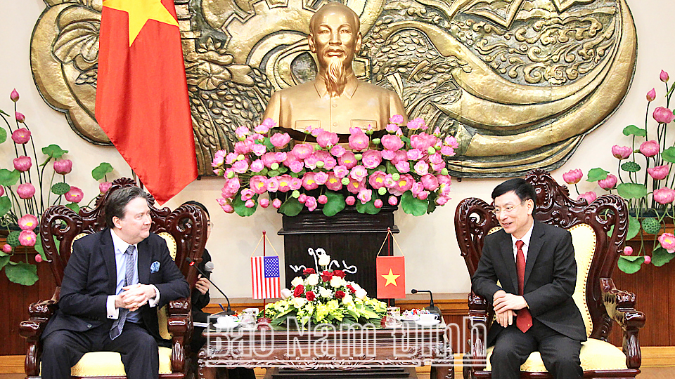 | Đồng chí Phạm Đình Nghị, Phó Bí thư Tỉnh ủy, Chủ tịch UBND tỉnh tiếp xã giao ông Marc Knapper - Đại sứ Hoa Kỳ tại Việt Nam. |