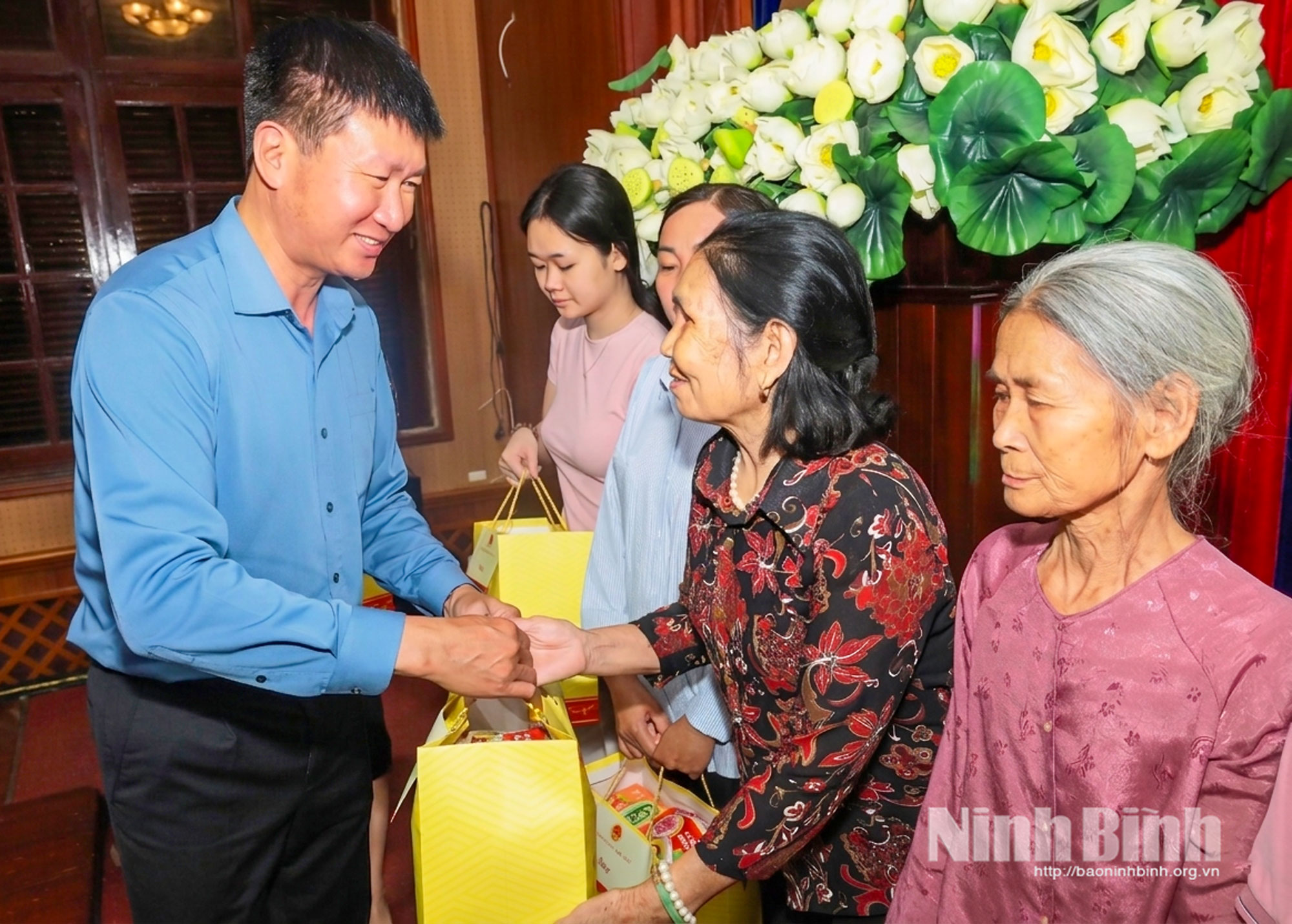Đồng chí Bùi Thị Minh Hoài, Ủy viên Bộ Chính trị, Bí thư Trung ương Đảng, Chủ tịch Ủy ban Trung ương MTTQ Việt Nam và Đoàn công tác đã trao tặng 200 suất quà (mỗi suất trị giá 2,5 triệu đồng), với tổng trị giá 500 triệu đồng cho gia đình chính sách, người có công, hộ nghèo và công nhân lao động có hoàn cảnh khó khăn trên địa bàn tỉnh Ninh Bình, thể hiện sự quan tâm thiết thực của Đảng, Nhà nước, Ủy ban Trung ương MTTQ Việt Nam đối với đời sống nhân dân, đặc biệt là những người có công, đối tượng yếu thế trong xã hội.