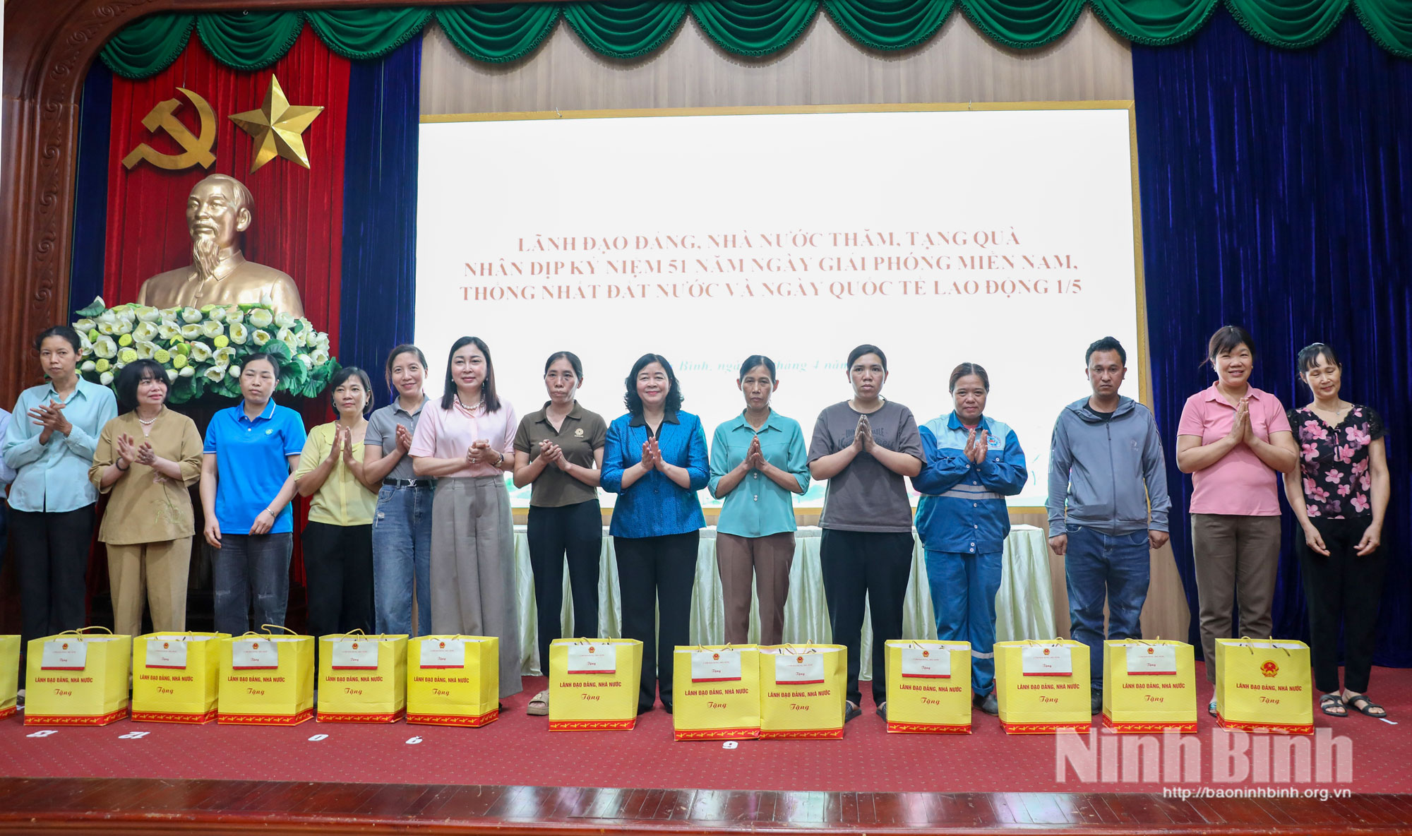 Nhân kỷ niệm 51 năm Ngày giải phóng miền Nam, thống nhất đất nước (30/4/1975 - 30/4/2026) và 140 năm Ngày Quốc tế Lao động 1/5 (1/5/1886 - 01/5/2026), sáng 27/4, Đoàn công tác của lãnh đạo Đảng, Nhà nước do đồng chí Bùi Thị Minh Hoài, Ủy viên Bộ Chính trị, Bí thư Trung ương Đảng, Chủ tịch Ủy ban Trung ương MTTQ Việt Nam làm Trưởng đoàn đã tới thăm, tặng quà cho các gia đình chính sách, người có công, hộ nghèo và công nhân lao động có hoàn cảnh khó khăn trên địa bàn tỉnh Ninh Bình.