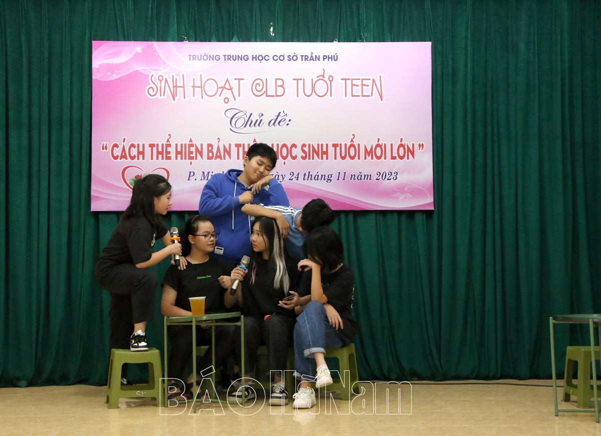 Trước những áp lực học hành, thi cử, sự phát triển công nghệ thông tin, sự kỳ vọng của cha mẹ… lứa tuổi học sinh THCS hiện nay đang trải qua giai đoạn đòi hỏi nhiều cố gắng trong học tập và cuộc sống. Sinh hoạt Câu lạc bộ Tuổi TEEN của trường THCS Trần Phú, thành phố Phủ Lý với chủ đề “Cách thể hiện bản thân ở tuổi mới lớn trong môi trường học đường” vừa được tổ chức tạo cho học sinh, giáo viên và phụ huynh sự gắn kết, sẻ chia đầy bổ ích trong giáo dục kỹ năng sống cho học sinh.