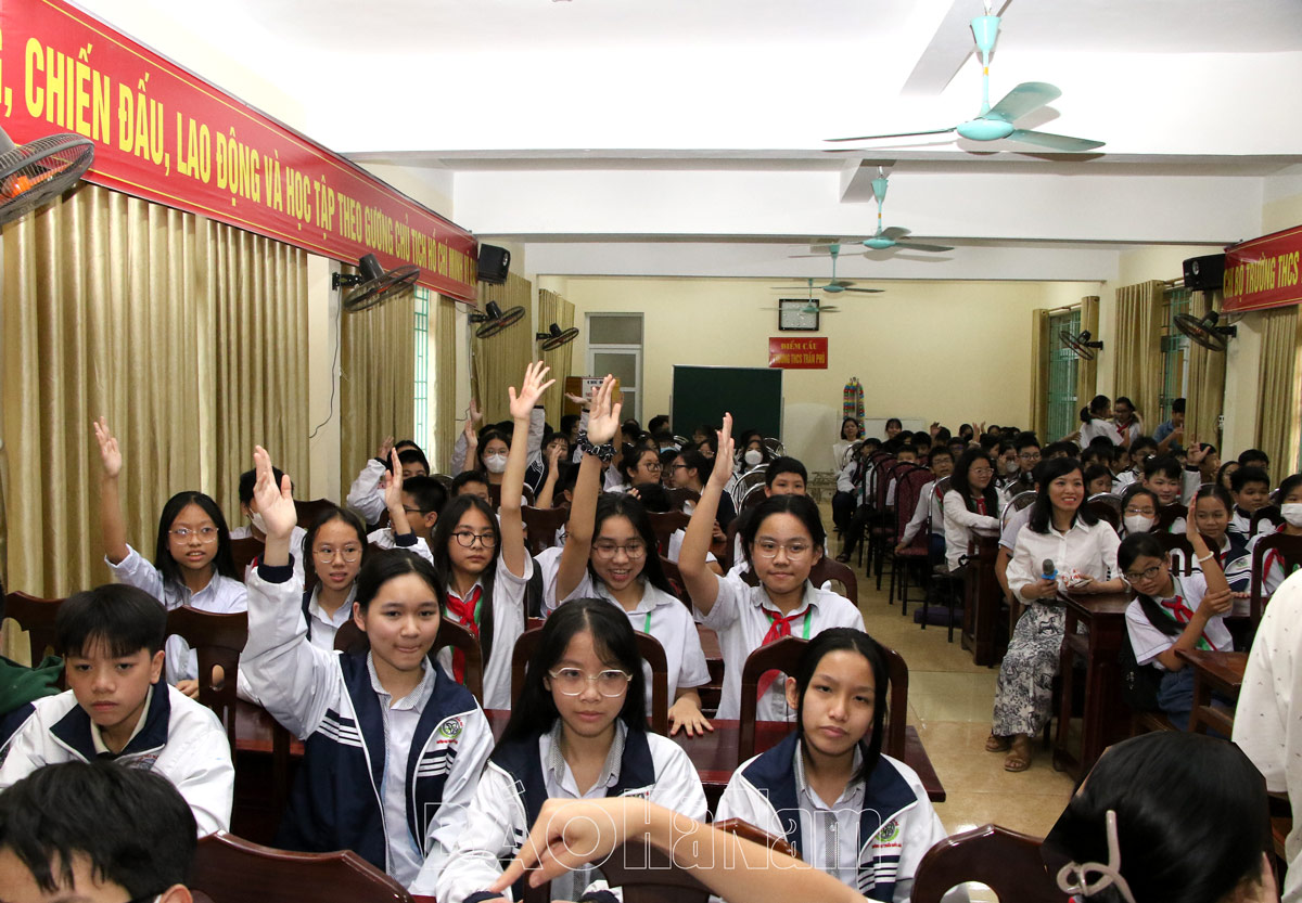 Chỉ trong thời gian gần hai giờ đồng hồ, buổi sinh hoạt Câu lạc bộ Tuổi TEEN của trường THCS Trần Phú, thành phố Phủ Lý với chủ đề “Cách thể hiện bản thân ở tuổi mới lớn trong môi trường học đường” đã thực sự mang đến cho các thầy cô giáo và học sinh nhà trường niềm vui, hạnh phúc bởi tất cả đều được sẻ chia những câu chuyện của tuổi học trò, xảy ra trong cuộc sống và học tập.