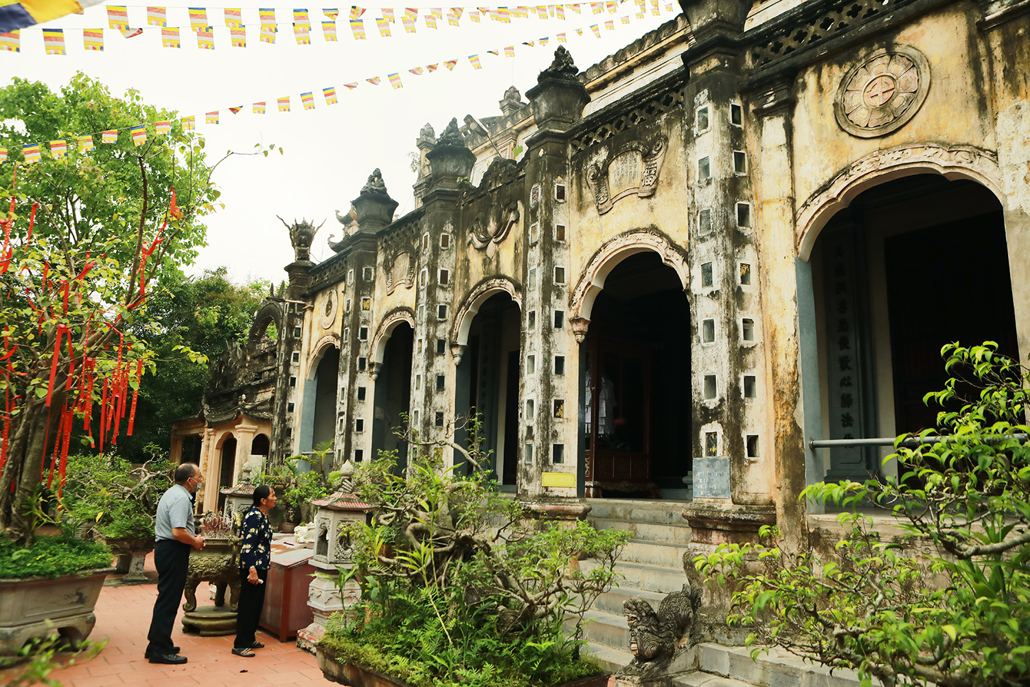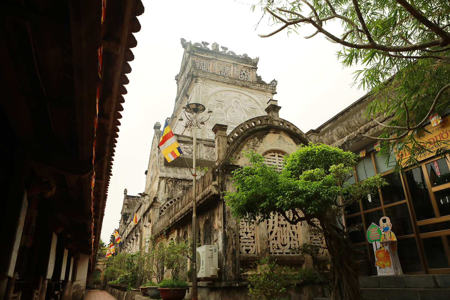 "Tương truyền rằng, khi xây chùa, các nhà sư không cần một bản vẽ thiết kế nào, không cần một chút vật liệu hiện đại là xi măng, sắt thép mà chỉ là gạch, vôi, vữa, mật, muối, giấy bản và công sức của nhân dân để xây dựng nên ngôi chùa có kiến trúc vừa hiện đại vừa cổ kính", thầy Vượng cho biết.