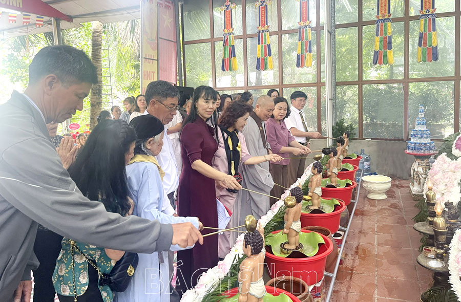 Các đại biểu thành kính thực hiện nghi lễ tắm Phật.