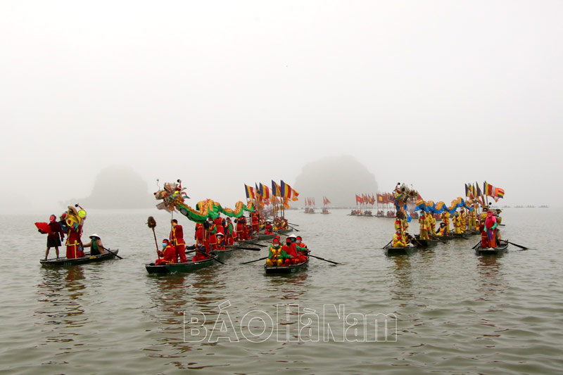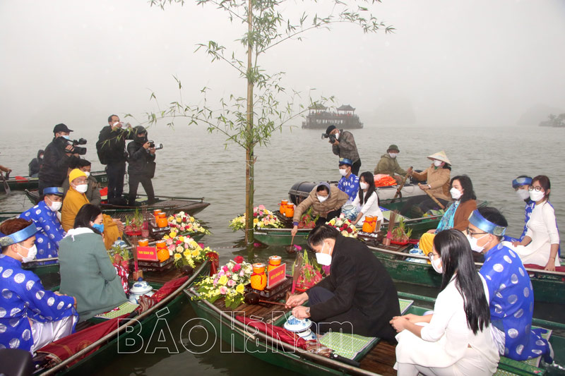 Khác so với mọi năm, các nghi thức tâm linh năm nay được tổ chức ngắn gọn, đảm bảo an toàn dịch bệnh nhưng vẫn trang trọng và giữ nguyên giá trị văn hóa truyền thống Phật giáo. Lễ rước nước là một trong những nghi thức quan trọng, mang ý nghĩa cầu nguyện cuộc sống bình an, trường tồn. Đoàn rước nước đi thuyền ra giữa hồ Tam Chúc, tại vị trí linh thiêng, có cắm trước một cây nêu, lấy nước mang về các điện Quan âm, Pháp chủ, Tam thế và chùa Ngọc.