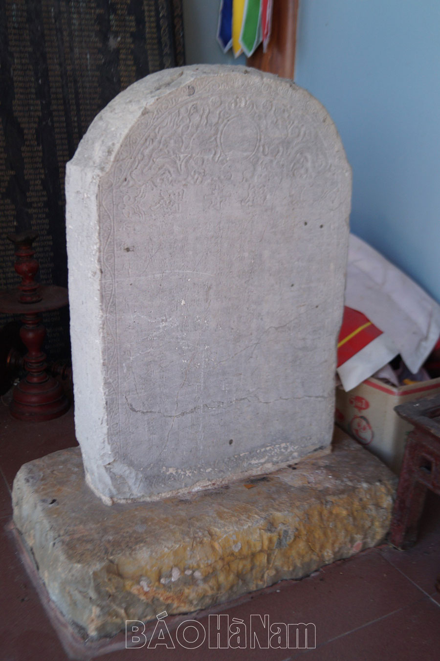 Tấm bia đá thứ hai lưu giữ tại chùa có tên寶福禪寺“Bảo Phúc thiền tự”, dựng vào năm thứ 8 niên hiệu Vĩnh Thịnh (1712) đời vua Lê Dụ Tông. Bia được tạo bằng chất liệu đá xanh nguyên khối, hai mặt khắc chữ Hán. Mặt trước, trán bia chạm nổi lá đề vân mây, trên cùng tạo chóp hình búp sen. Thân bia, xung quanh tạo diềm, diềm trên cùng tạo hoa văn lá đề, dưới tạo 4 ô tròn lớn khắc 4 chữ “Bảo Phúc thiền tự” (Chùa Bảo Phúc), diềm hai bên chạm hoa cúc vân mây, diềm dưới tạo cánh sen dẹo. Mặt sau trang trí hoa văn giống mặt trước. Dưới diềm trên cùng tạo 4 ô tròn khắc 4 chữ lớn鑿石碑記“Tạc thạch bi kí” (Ghi khắc vào bia đá). Nội dung bia ghi việc công đức trùng tu, tôn tạo lại chùa Bảo Phúc và ca ngợi tấm lòng thảo thơm của các thiện nam tín nữ đã cung tiến xây chùa: “Từng nghe: Phật được sinh ra bắt nguồn từ Tây Trúc sau được truyền đến đất Đông Thổ. Trải qua nhiều nơi xét thấy Sơn Nam là nơi đất đẹp, Đồng Lư địa thế hữu tình, chùa triền phát triển, ngôi chùa Bảo Phúc mới được xây dựng Thượng điện, Trung điện, Tiền đường. Chuyển ra hành lang để tạc tượng các vị Phật Thánh: Quá khứ, hiện tại, tương lai (Tam Thế) là cần thiết, tượng Thánh Hiền, Tứ Phủ, Hộ Pháp, Đức Ông trang hoàng thêm màu vàng, xanh, tím, đỏ làm tăng thêm cảnh sắc, hoa quả trước sau đủ đầy. Công việc hoàn thành chu tất, pháp khí truyền đến ngàn xuân, nền phúc để lại vạn đời. Các quan viên trong toàn xã cùng với dân chúng cùng quyên góp tiền của tu sửa chùa để sự màu nhiệm của Phật pháp còn mãi, người thi văn đạt đến Tam khôi (Trạng Nguyên, Bảng Nhãn, Thám Hoa), người thi võ đạt đến cửu phẩm công hầu, người làm nông, làm thợ thì được giàu có yên vui với nghề, người buôn bán tiền của mãi được bồi đắp, có tâm phúc mãi dài lâu, ngàn năm sự màu nhiệm của Phật pháp vẫn hưng thịnh sáng mãi với đời. Tổ tông con cháu gia tiên nội ngoại đều được pháp lực của Phật giúp vượt qua được Bát Nạn tam đồ (tám chỗ chúng sinh thọ khổ, ba đường dữ). Những người thiện tâm công đức sớm được khắc ghi vào bia để truyền đến muôn đời, khắc tên tuổi ngàn vạn năm vẫn còn mãi…”. Tiếp đến là danh tính những phật tử, tín đồ có tâm công đức. Mặt trước khắc 236 họ tên người công đức, mặt sau ghi danh 180 người.