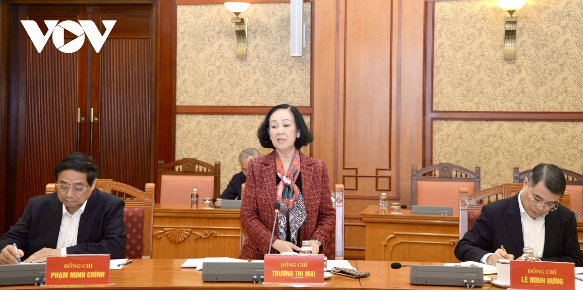 | Thường trực Ban Bí thư, Trưởng Ban Tổ chức Trung ương Trương Thị Mai phát biểu tại phiên họp. |