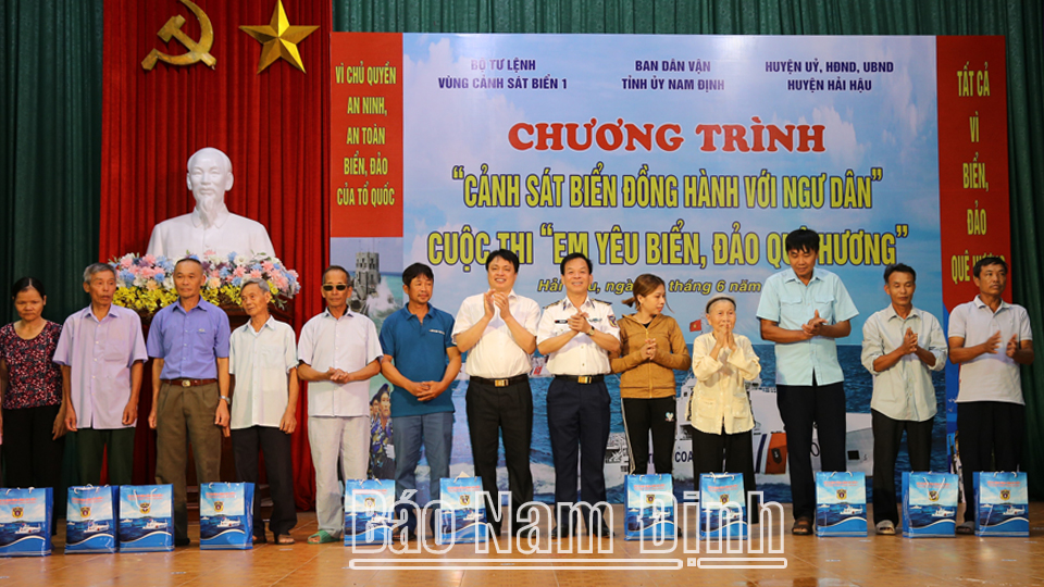 Nhân dịp này, Bộ Tư lệnh Vùng Cảnh sát biển 1 đã thăm, tặng 100 suất quà cho các Mẹ Việt Nam Anh hùng, gia đình chính sách, đồng bào tôn giáo, ngư dân có hoàn cảnh khó khăn của huyện Hải Hậu; tặng 1.000 cờ Tổ quốc cho bà con ngư dân. Ngoài ra, Bộ Tư lệnh Vùng Cảnh sát biển 1 cũng đã tổ chức cuộc thi “Em yêu biển đảo quê hương” với sự tham gia của học sinh các trường THCS: Thị trấn Thịnh Long, Hải Hòa, Hải Lý, đồng thời tặng 30 xe đạp, 30 suất quà cho học sinh có hoàn cảnh khó khăn vượt khó học giỏi.