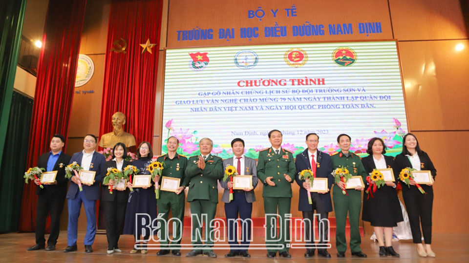| Hội truyền thống Trường Sơn- đường Hồ Chí Minh Việt Nam tỉnh tặng Kỷ niệm chương "Chiến sỹ Trường Sơn" cho 12 thầy, cô giáo, giảng viên, cán bộ quản lý của trường Đại học Điều dưỡng Nam Định. |