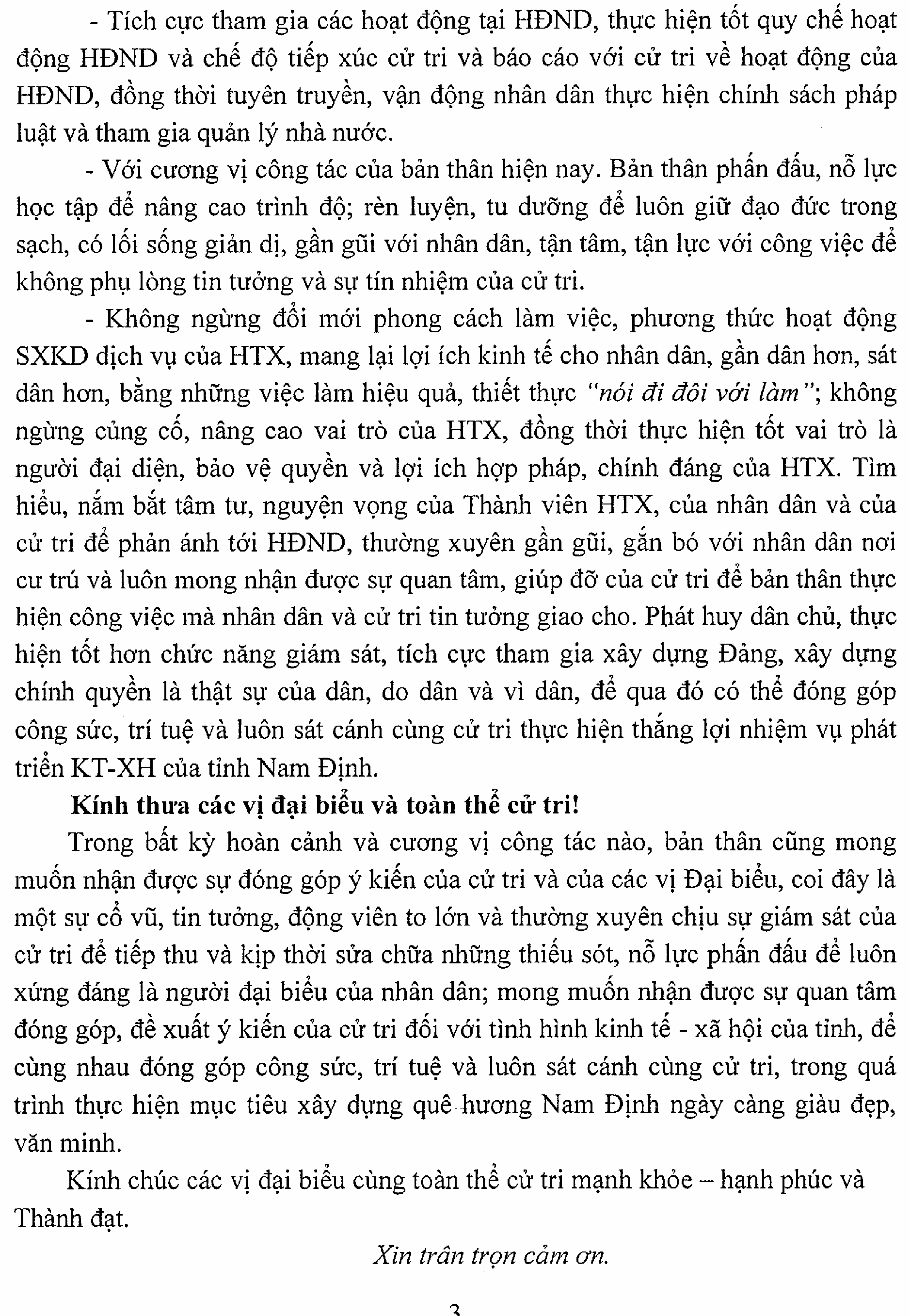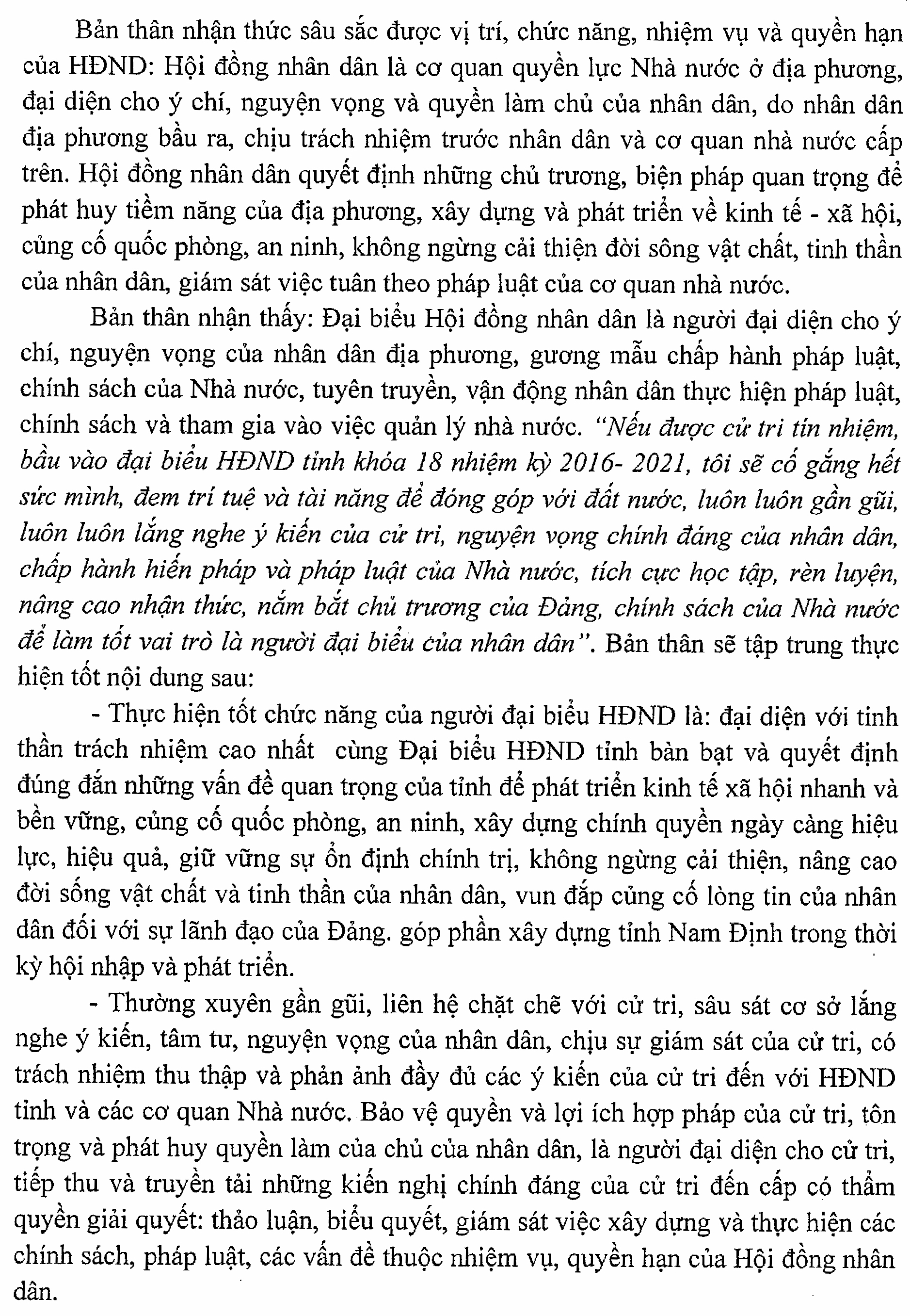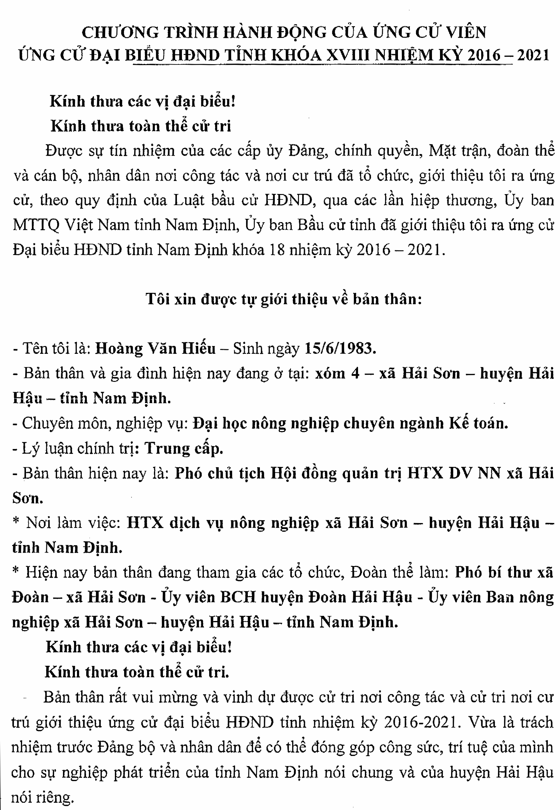 Chương trình hành động của ông Hoàng Văn Hiếu, ứng cử viên Đại biểu HĐND tỉnh Nam Định khoá XVIII