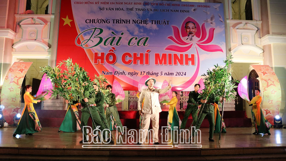 Chào mừng kỉ niệm 134 năm Ngày sinh Chủ tịch Hồ Chí Minh (19-5-1890 - 19-5-2024), tối 17-5, tại tiền sảnh Nhà Văn hóa 3-2 tỉnh (thành phố Nam Định), Sở Văn hóa, Thể thao và Du lịch tổ chức Chương trình nghệ thuật đặc biệt chủ đề “Bài ca Hồ Chí Minh”.