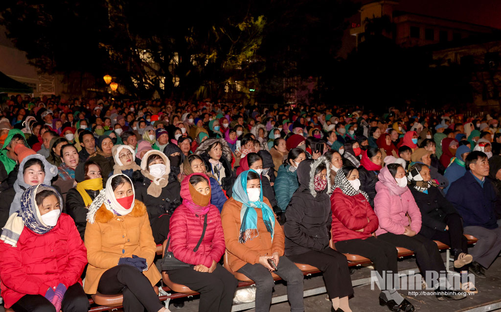 Với 18 tiết mục ở nhiều thể loại như: hát Chèo, hát Xẩm, hát Văn, Cải lương, Saxophone… do các nghệ sỹ Nhà hát Nghệ thuật truyền thống tỉnh Ninh Bình biểu diễn đã tạo được không khí sôi động, hấp dẫn tại sân khấu Thủy Đình, phố cổ Hoa Lư.