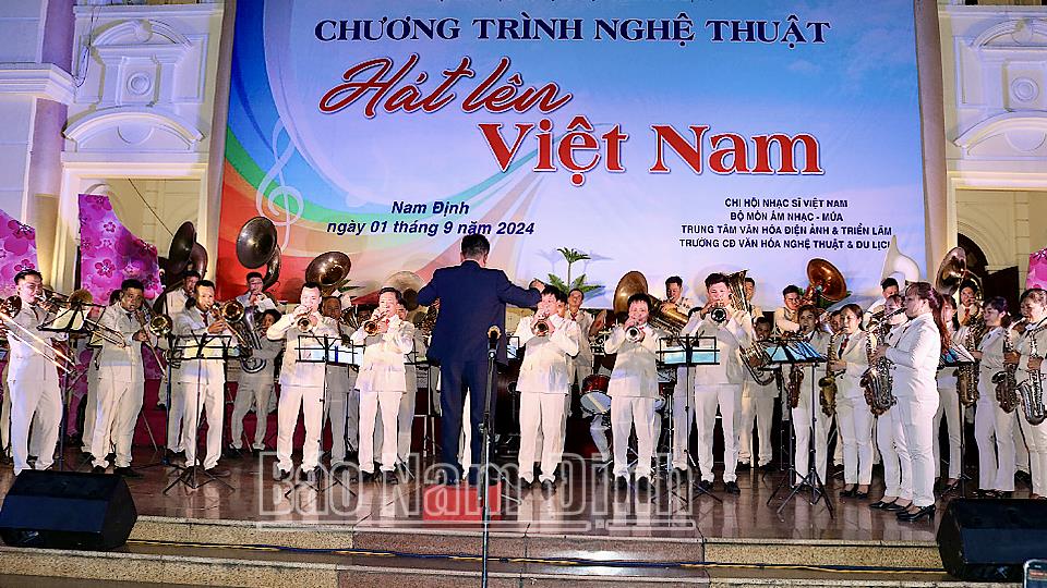 Chào mừng kỷ niệm 79 năm Quốc khánh (2/9/1945 - 2/9/2024), tối 1/9, tại Tiền sảnh Nhà Văn hóa 3/2 tỉnh (thành phố Nam Định), Hội Văn học - Nghệ thuật tỉnh tổ chức Chương trình nghệ thuật chủ đề “Hát lên Việt Nam”.