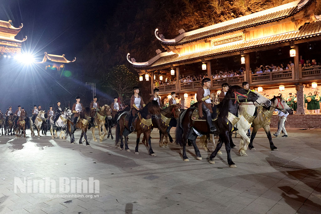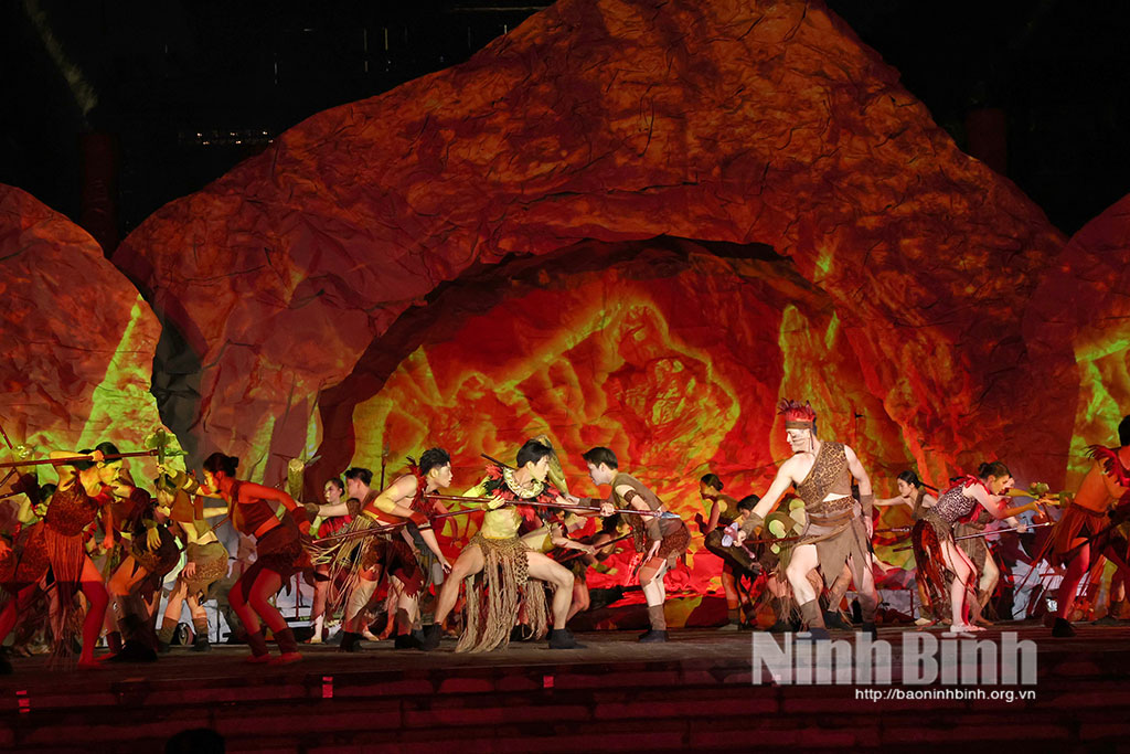 Chương trình quy tụ khoảng 2.500 diễn viên và lực lượng tham gia (bao gồm nghệ sĩ kịch, xiếc, múa, dàn diễn viên quần chúng…). Các phân cảnh sinh hoạt, nghi lễ và chiến trận được dàn dựng trên không gian thực cảnh rộng lớn, tái hiện không khí lịch sử một cách sống động.