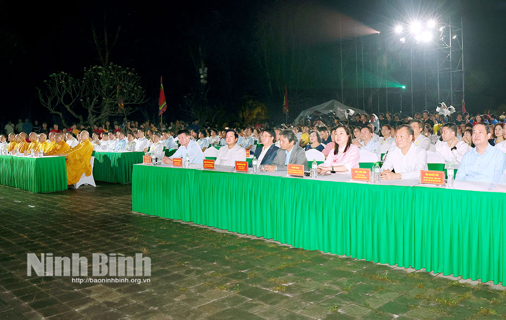 Dự chương trình nghệ thuật có các đồng chí: Trần Huy Tuấn, Ủy viên Trung ương Đảng, Bí thư Tỉnh ủy; Phạm Quang Ngọc, Ủy viên Trung ương Đảng, Bí thư Tỉnh ủy Hưng Yên, nguyên Phó Bí thư Tỉnh ủy, nguyên Chủ tịch UBND tỉnh Ninh Bình; Bùi Văn Nam, nguyên Ủy viên Trung ương Đảng, nguyên Thứ trưởng Bộ Công an, nguyên Bí thư Tỉnh ủy Ninh Bình; Hoàng Đạo Cương, Thứ trưởng Bộ Văn hóa, Thể thao và Du lịch; Đinh Thị Lụa, Phó Bí thư Thường trực Tỉnh ủy, Chủ tịch Ủy ban MTTQ Việt Nam tỉnh; Lê Quốc Chỉnh, Phó Bí thư Tỉnh ủy, Chủ tịch HĐND tỉnh; Mai Văn Tuất, Phó Bí thư Tỉnh ủy, Trưởng Đoàn đại biểu Quốc hội tỉnh.