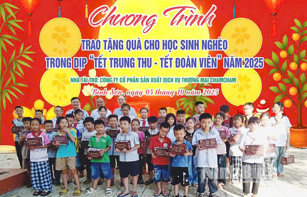 Trao tặng quà cho học sinh nghèo tại xã Bình Sơn nhân dịp Tết Trung thu 2025.