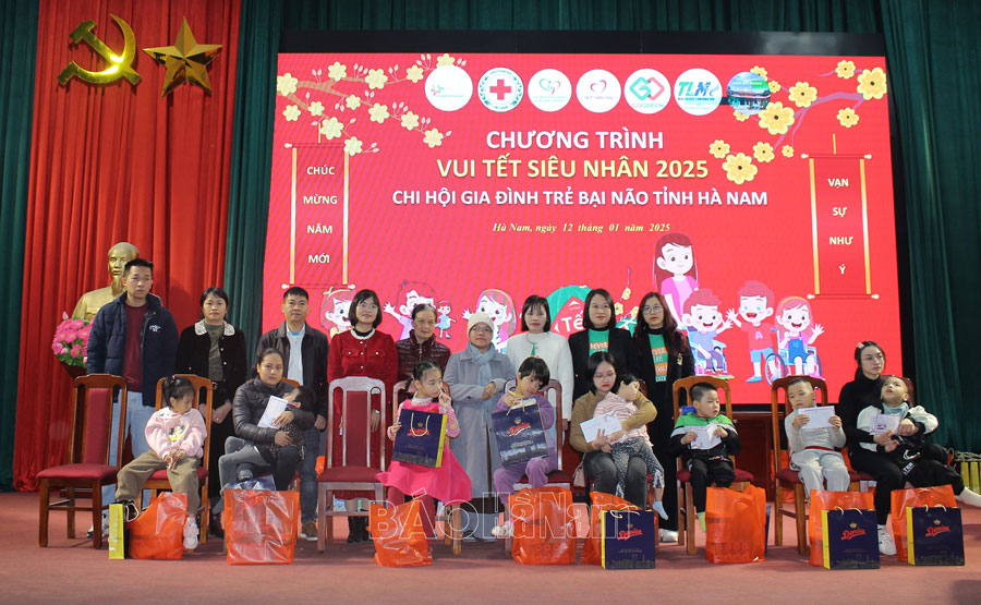 Sáng 12/1, tại Nhà văn hoá phường Châu Sơn (TP Phủ Lý), Chi hội Gia đình trẻ bại não tỉnh Hà Nam tổ chức Chương trình "Vui Tết Siêu nhân 2025" cho hơn 60 trẻ em mắc bệnh bại não.