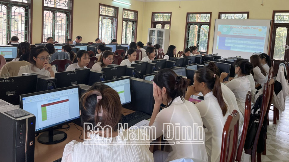 Trường Cao đẳng Sư phạm Nam Định hiện có 105 cán bộ, giảng viên (trong đó 95,06% giảng viên có trình độ thạc sĩ, tiến sĩ), trên 1.300 học viên với tổng số 30 lớp thuộc các loại hình đào tạo. Từ nhiều năm nay, việc quản lý cán bộ, giảng viên và người lao động cũng như quản lý đào tạo, tài chính... của nhà trường đã và đang được số hóa, quản lý bằng phần mềm. Trong hoạt động giảng dạy, nhà trường đã triển khai dạy và học, kiểm tra, đánh giá gồm số hóa học liệu (giáo trình điện tử, bài giảng điện tử, kho bài giảng E-learning, ngân hàng câu hỏi trắc nghiệm), các khoa chuyên môn có các phần mềm, thiết bị mô phỏng theo chuyên ngành giảng dạy, số hóa chương trình, giáo trình, tài liệu tham khảo... Trong đó, nhà trường đã triển khai xây dựng Kho học liệu số bắt đầu từ năm học 2022-2023 và đăng tải công khai trên website trường làm tư liệu tham khảo cho cán bộ, giảng viên, sinh viên và những người quan tâm. Hiện tại, Kho học liệu số có 81 video tư liệu giảng dạy, hoạt động nghiệp vụ sư phạm của giảng viên, sinh viên trong toàn trường. Hàng năm, nhà trường tổ chức thi, kiểm tra, đánh giá kết quả học tập các học phần Tin học trên phòng thực hành Tin học của nhà trường. Các phòng học đều được trang bị đầy đủ máy chiếu, thiết bị phụ trợ giảng dạy, kết nối internet để phục vụ công tác dạy học... Các hoạt động của trường hầu hết đều đã ứng dụng công nghệ thông tin như tuyển sinh, đào tạo trực tuyến thông qua các nền tảng công nghệ như: Zoom, Google Meet... Giáo viên và học viên của trường thường xuyên tương tác trực tuyến; giáo viên tích hợp các bài giảng đa phương tiện, giúp học sinh, sinh viên thuận lợi tra cứu, học tập.