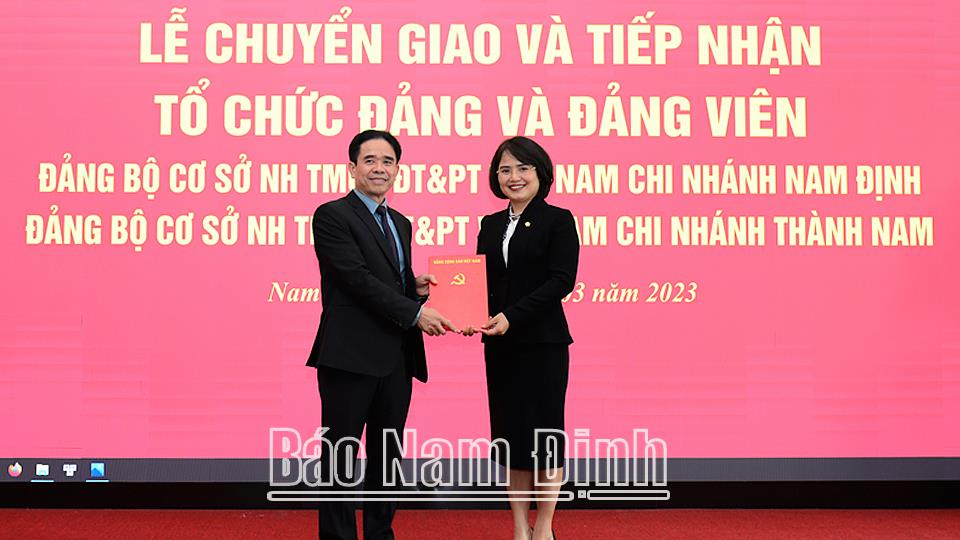 Chiều 17-3, Đảng ủy Khối các Cơ quan và Doanh nghiệp tỉnh và Đảng ủy Ngân hàng Thương mại Cổ phần Đầu tư và Phát triển Việt Nam (BIDV) đã tổ chức lễ chuyển giao - tiếp nhận tổ chức cơ sở Đảng và đảng viên của Chi nhánh BIDV Nam Định, Chi nhánh BIDV Thành Nam về Trung ương.