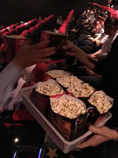 Các bản nhỏ trường Nguyễn Đình Chiểu đi xem phim và thưởng thức bắp rang bơ.