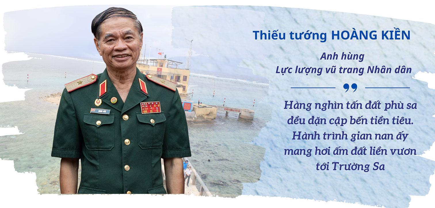 Anh hùng Lực lượng vũ trang Nhân dân, Thiếu tướng Hoàng Kiền cho biết: Thực thi kế hoạch là hành trình gian nan. Việc đưa hàng nghìn tấn đất ra Trường Sa tạo nên kỳ tích chưa từng có của Trung đoàn Công binh Hải quân 83. Trên mỗi chuyến tàu chở vật liệu, đơn vị bố trí thêm xe đất nặng khoảng 7 tấn. Tần suất 70 chuyến tàu mỗi năm mang theo lượng đất phù sa màu mỡ khổng lồ rời bến. Suốt thời gian ông công tác tại Trung đoàn, hàng nghìn tấn đất đều đặn cập bến các đảo tiền tiêu. Hơi ấm đất liền hòa quyện cùng biển đảo.