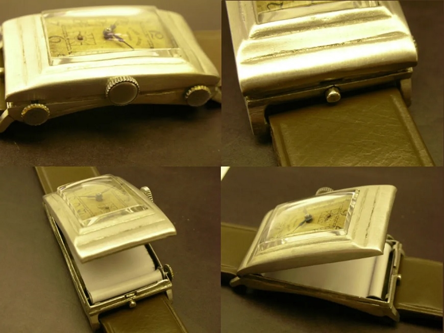 Chiếc “đồng hồ” hiệu Notora này do hãng Favre-Leuba (Thụy Sĩ) sản xuất vào những năm thập niên 1920. Riêng sự cổ kính của nó có lẽ cũng đủ gây sự chú ý của nhiều người. Tuy nhiên, đây không đơn thuần chỉ là một chiếc đồng hồ. Thiết kế hình chữ nhật, kiểu dáng dành riêng cho nữ giới, chiếc đồng hồ chạy cơ có 2 chiếc lẫy trông có vẻ như hơi thừa trên thân. Khi nhấn chiếc lẫy ở vị trí 6 giờ, toàn bộ mặt đồng hồ sẽ nâng lên, để lộ ra bên dưới là một cuộn giấy để ghi lại thông tin mật khi cần thiết. Một bánh xe phụ cạnh bánh xe lên dây cót dùng để cuộn giấy khi viết và đọc.