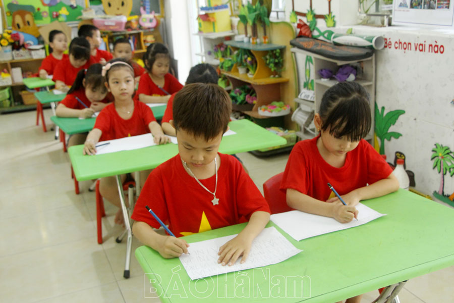 Trong một buổi học cuối năm của trẻ lớp A5, Trường Mầm non Liêm Chính (TP Phủ Lý), hầu hết các bé 5 tuổi đã nhận biết đầy đủ số, chữ cái, học làm quen với cách cầm bút, tư thế ngồi viết... Cô giáo Ngô Thị Bạch Mai, Hiệu trưởng nhà trường cho biết: Trong kế hoạch giáo dục của nhà trường, việc hỗ trợ trẻ 5 tuổi có kiến thức, kĩ năng tốt, tự tin khi vào học lớp 1 đã được chỉ đạo thực hiện có nền nếp. Trên cơ sở đánh giá trẻ theo từng giai đoạn, thời điểm, việc hỗ trợ của giáo viên bảo đảm có các phương pháp phù hợp điều kiện thực tế và mức độ nhận biết của trẻ. Nhà trường còn phối hợp chặt chẽ với Trường Tiểu học Liêm Chính trong việc phân công giáo viên lớp 1 đến dự giờ học của lớp 5 tuổi, sau đó, hai nhà trường cùng họp, trao đổi chuyên môn, tư vấn góp ý cho giáo viên mầm non trong cách hướng dẫn trẻ kỹ năng, kiến thức. Đây là tiền đề quan trọng để trẻ có tâm thế sẵn sàng chuyển sang bậc học phổ thông.