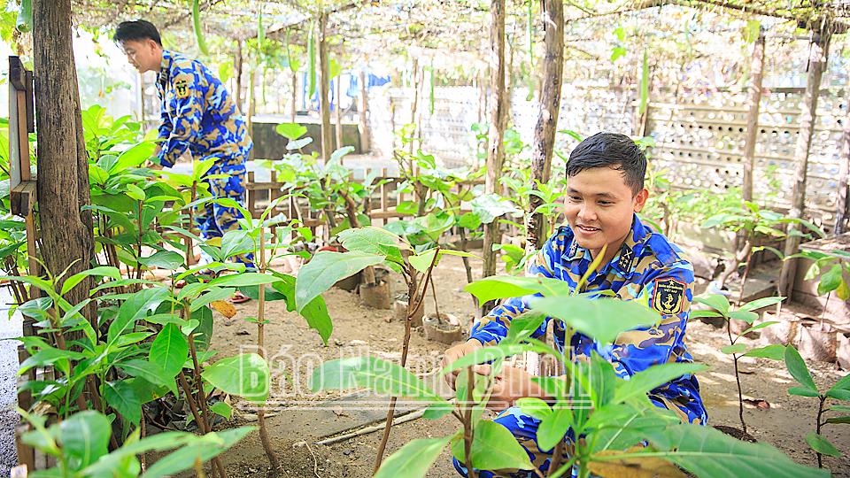 | Chiến sĩ đảo Trường Sa Đông chăm sóc cây xanh. |