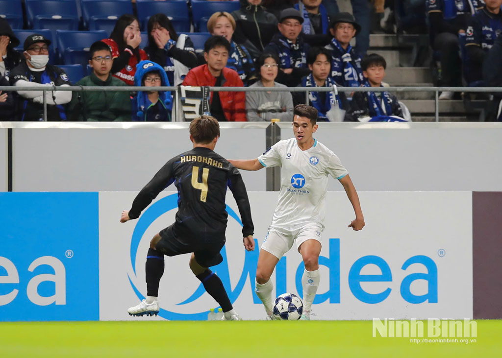 Khác với 2 trận đấu trước, ở trận đấu trên sân của CLB Gamba Osaka, HLV Vũ Hồng Việt quyết định sử dụng đội hình với 3 cầu thủ nội binh, gồm: Lâm Ti Phông, Lý Công Hoàng Anh và Chu Văn Kiên. Tuy vậy, sự thay đổi này không giúp CLB Thép Xanh Nam Định cải thiện được lối chơi. Đại diện của bóng đá Việt Nam nhập cuộc khá bế tắc, để lộ nhiều hạn chế trong khâu phòng ngự và nhanh chóng đánh mất thế trận trước đại diện của đội bóng xứ sở hoa Anh đào.