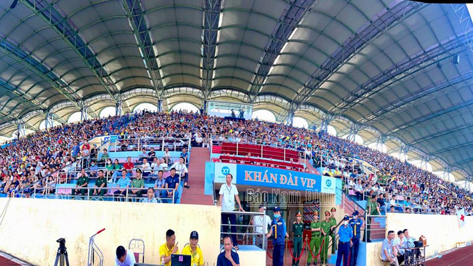 Vào lúc 17h00 ngày 27-8, trên SVĐ Thiên Trường (thành phố Nam Định) đã diễn ra trận đấu thuộc vòng 7, giai đoạn II, Giải Bóng đá Vô địch quốc gia - Night Wolf (V-League) 2023 giữa CLB Thép Xanh Nam Định gặp CLB Hồng Lĩnh Hà Tĩnh. Các đồng chí: Mai Thanh Long, TUV, Phó Chủ tịch HĐND tỉnh; Trần Lê Đoài, TUV, Phó Chủ tịch UBND tỉnh đến sân theo dõi trận đấu.
