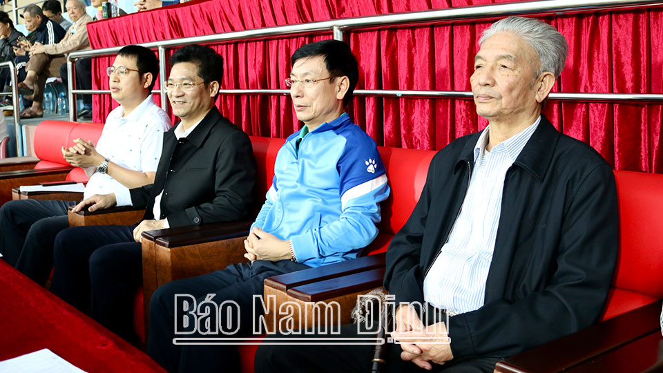 | Các đồng chí: Phạm Đình Nghị, Phó Bí thư Tỉnh uỷ, Chủ tịch UBND tỉnh; Trần Anh Dũng, Ủy viên Ban TVTU, Phó Chủ tịch Thường trực UBND tỉnh đến sân theo dõi trận đấu. |