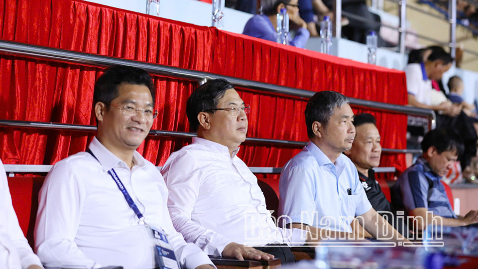 Các đồng chí: Phạm Gia Túc, Uỷ viên BCH Trung ương Đảng, Bí thư Tỉnh uỷ; Trần Anh Dũng, Uỷ viên Ban TVTU, Phó Chủ tịch Thường trực UBND tỉnh; Mai Thanh Long, TUV, Phó Chủ tịch HĐND tỉnh; Trần Lê Đoài, TUV, Phó Chủ tịch UBND tỉnh đến sân theo dõi trận đấu.
