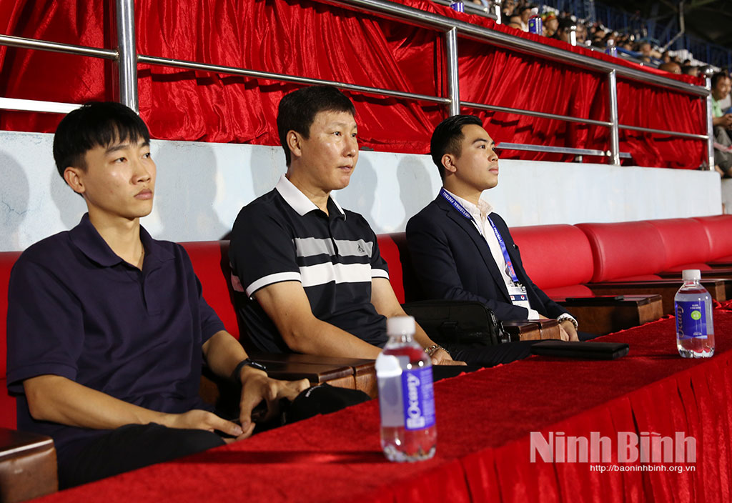 Đồng chí Trần Anh Dũng, Uỷ viên Ban Thường vụ Tỉnh uỷ, Phó Chủ tịch UBND tỉnh dự khán trận đấu.Ông Kim Sang-sik, Huấn luyện viên trưởng Đội tuyển Quốc gia Việt Nam dự khán trận đấu trên Sân vận động Thiên Trường.