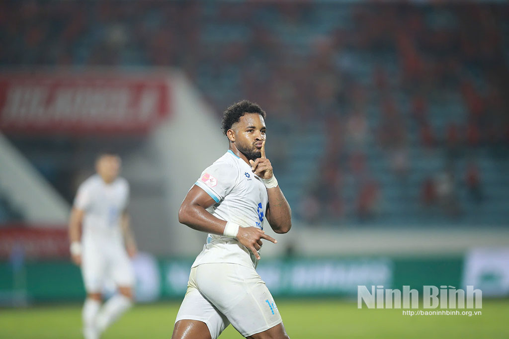 Trong khi đó, Ninh Bình FC vẫn cho thấy sự nguy hiểm ở các pha phản công. Phút 76, Hoàng Đức treo bóng vào vòng cấm nhưng Geovane không tận dụng thành công.