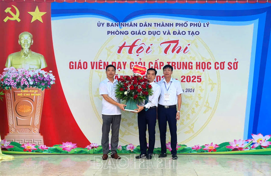 Lãnh đạo UBND thành phố Phủ Lý tặng hoa chúc mừng hội thi.