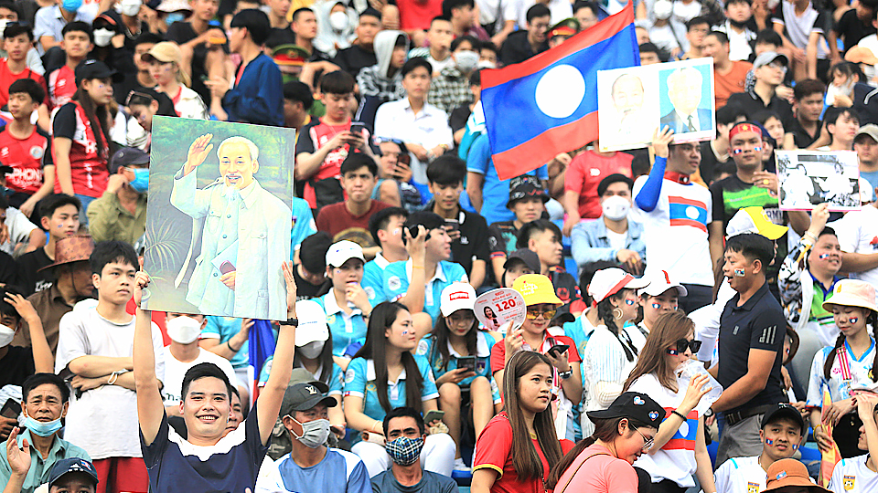 | Những hình ảnh đẹp về tình hữu nghị Việt - Lào được lan tỏa trên các khán đài SVĐ Thiên Trường.
