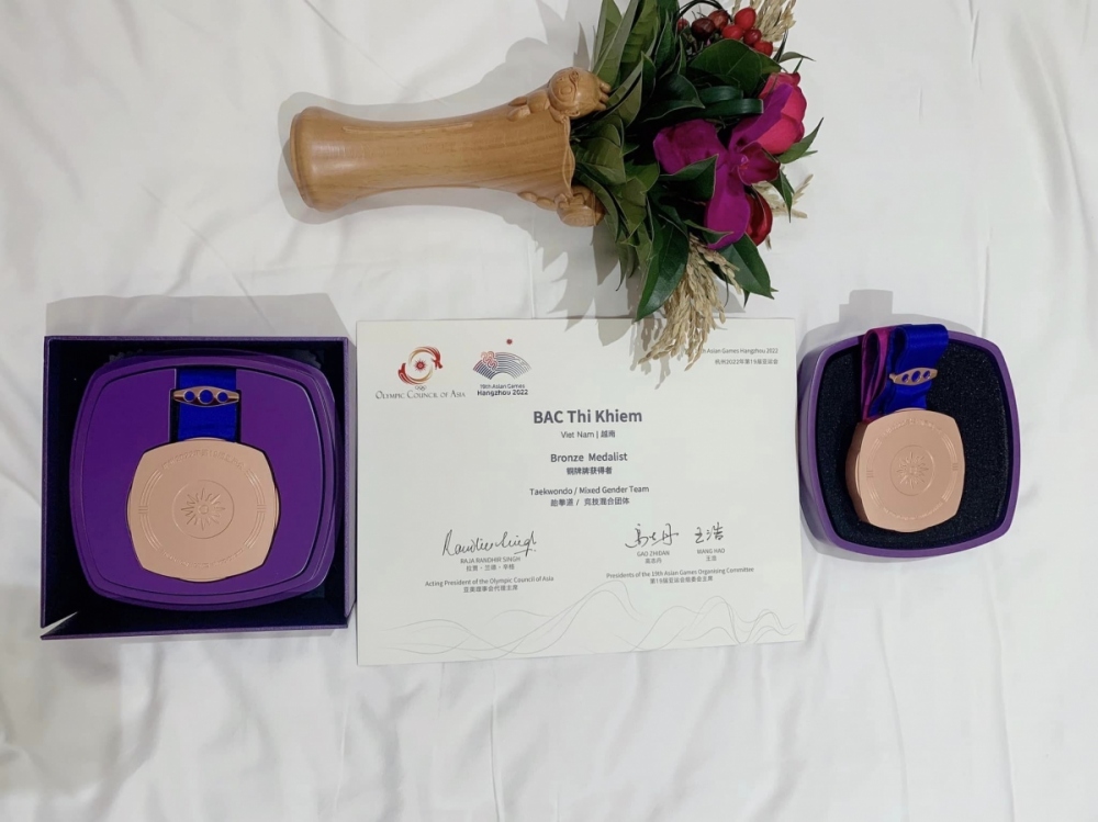 Chiều 27/9, Taekwondo mang về cho Thể thao Việt Nam thêm 1 HCĐ ở nội dung đối kháng 67kg nữ của Bạc Thị Khiêm. Cô gái 23 tuổi người dân tộc Thái đã xuất sắc đánh bại đối thủ Hàn Quốc ở tứ kết, trước khi dừng bước ở bán kết trước VĐV chủ nhà Trung Quốc. HCĐ của Bạc Thị Khiêm nâng thành tích của Taekwondo Việt Nam lên 3 HCĐ khi tranh tài ở Hàng Châu năm nay. Trước đó, Trần Hồ Duy giành HCĐ nội dung quyền cá nhân nam, và các VĐV đối kháng đồng đội hỗn hợp cũng có HCĐ.