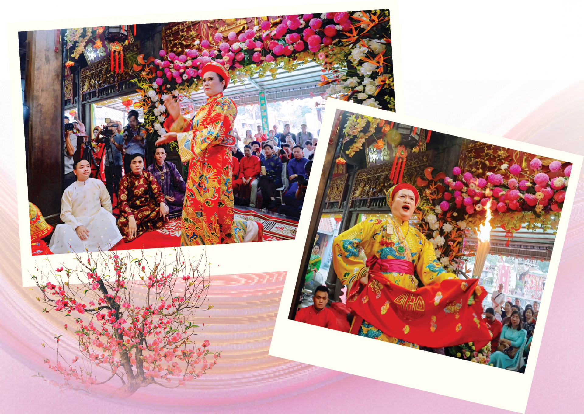 | Trình diễn nghệ thuật Chầu văn và hầu đồng tại Chợ Tết "Một thoáng Thành Nam" Xuân Giáp Thìn 2024. |