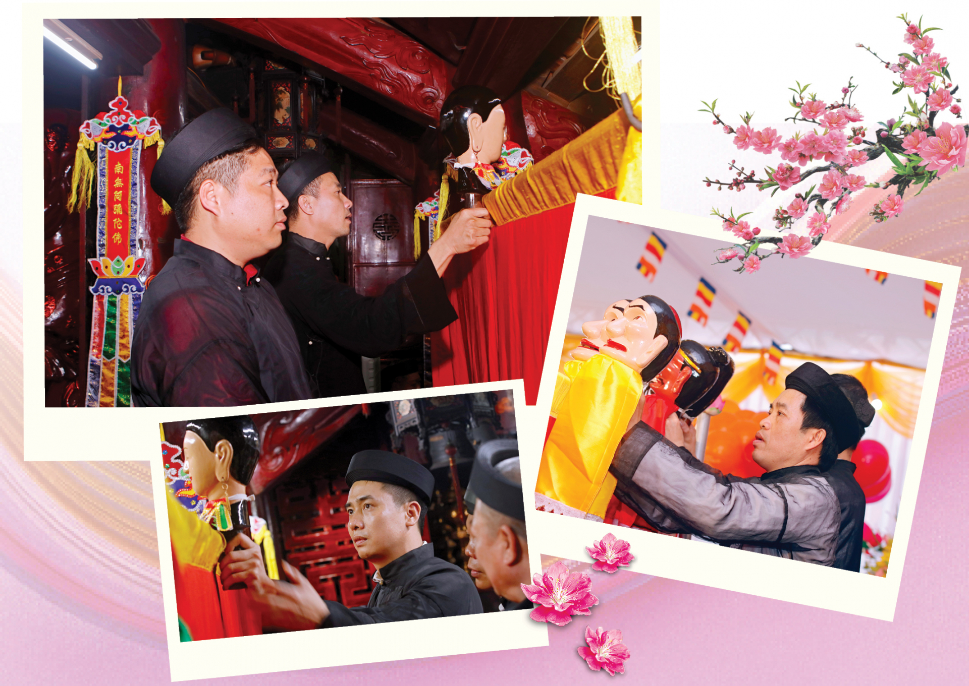 | Biểu diễn nghệ thuật múa rối đầu gỗ chầu Thánh (hay còn gọi là Ổi Lỗi) trong lễ hội Chùa Bi (Nam Trực). |
