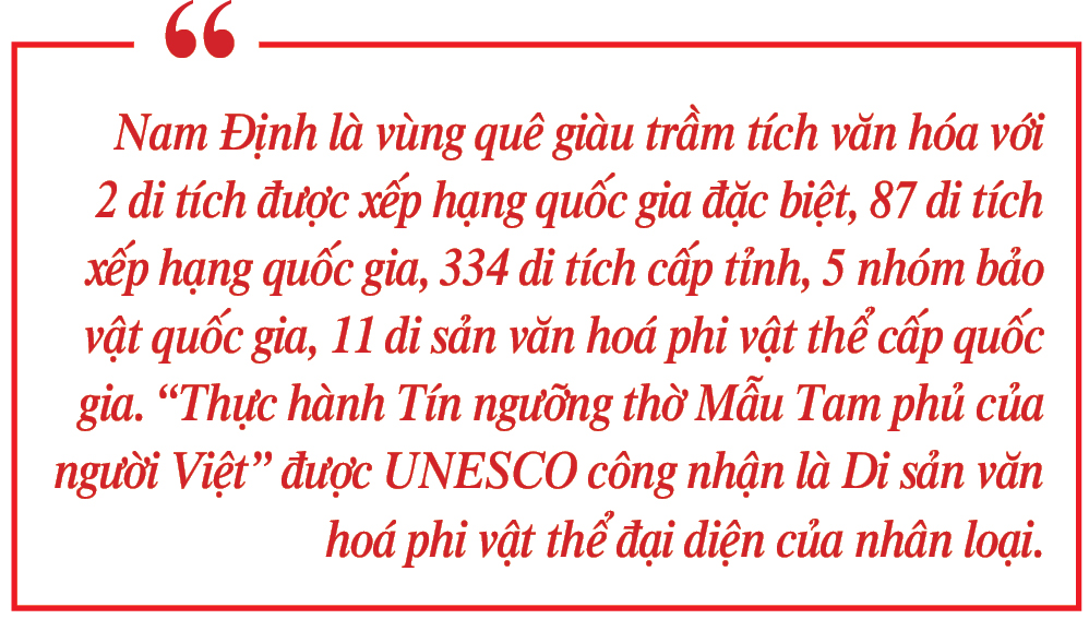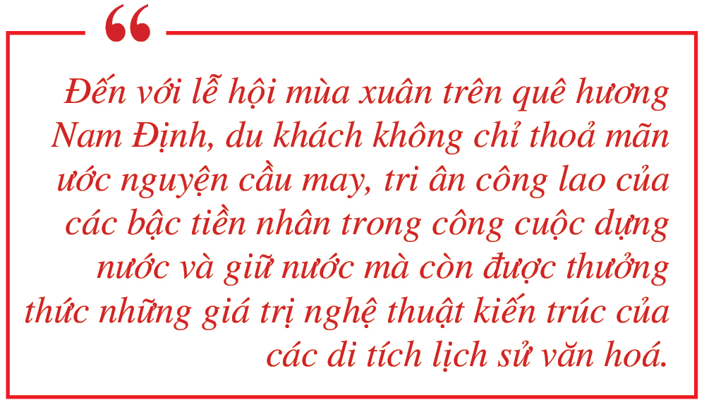 Với “thế đứng” của một tỉnh giàu truyền thống văn hiến, Nam Định xứng danh là vùng quê giàu trầm tích di sản văn hoá, là "vùng đất của lễ hội" trong đó mùa Xuân có nhiều lễ hội lớn mang đậm bản sắc văn hoá “Thiên Trường xưa - Nam Định nay”.