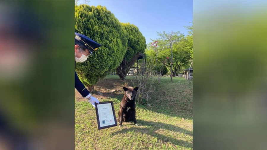 Chó con Koume được quan chức cứu hỏa phường Wakaba, thành phố Chiba trao thư khen tháng trước. Ảnh: Chiba Riding Park